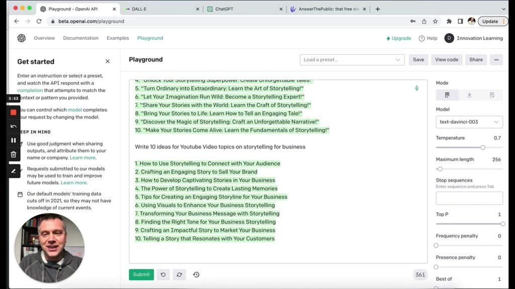 This “how to video” demonstrates how to get quickly and simply started with AI tools like ChatGPT to ideate and